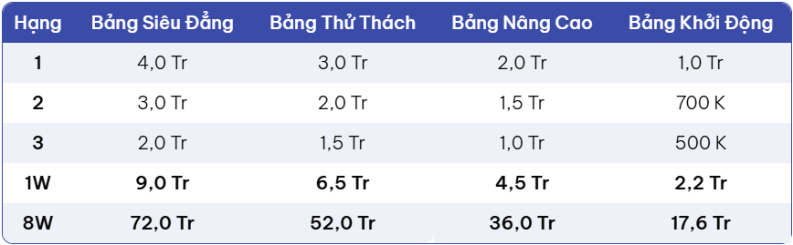 | Bảng Siêu Đẳng | NAV từ 1 tỷ VNĐ trở lên |