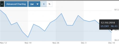| Chỉ số USD trong xu hướng giảm kể từ đầu tháng 12 đến nay. |