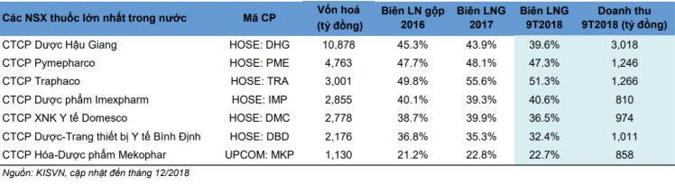 Một vấn đề đáng quan tâm của ngành dược là biên lợi nhuận gộp có xu hướng giảm. Theo một báo cáo của Chứng khoán KIS, trong thị trường dược phẩm được kiểm soát chặt chẽ, khả năng các công ty sản xuất dược phẩm nội địa chuyển phần giá tăng lên cho người tiêu dùng sẽ bị hạn chế. Do đó biên lợi nhuận gộp của nhóm này dự kiến sẽ thu hẹp 2% đến 5%.
