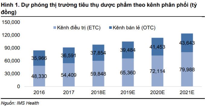 Theo nghiên cứu của IMS Health, tiêu thụ thuốc của Việt Nam ở kênh OTC chỉ tăng nhẹ 3,6% CAGR trong 5 năm tới, giảm tỷ trọng trong tổng tiêu thụ ngành Dược xuống còn 35% vào năm 2021. Thay vào đó, doanh số kênh ETC được dự phóng tăng trưởng mạnh 10,6% CAGR và sẽ chiếm chủ đạo 65% thị trường Dược phẩm đến 2021.
