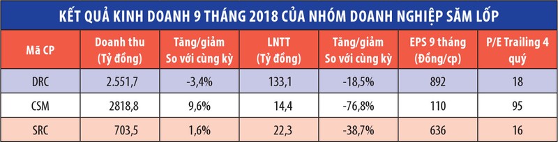 Lợi nhuận giảm mạnh trong 9 tháng đầu năm nay cũng là câu chuyện được ghi nhận tại 2 doanh nghiệp sản xuất săm lốp niêm yết khác là CTCP Cao su Đà Nẵng (DRC) và CTCP Cao su Sao Vàng (SRC).