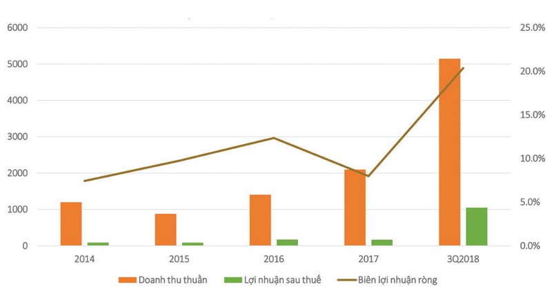 Lũy kế 9 tháng, doanh thu thuần và lợi nhuận sau thuế của ASM lần lượt là 5.147 tỷ đồng và 1.048 tỷ đồng. Kết quả này lần lượt cao gấp 2,5 lần và 6,2 lần kết quả cả năm 2017. ASM đã vượt 17% kế hoạch lợi nhuận đề ra.