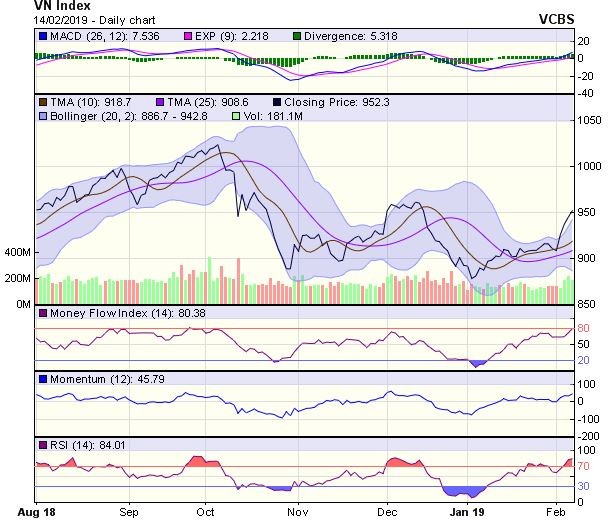 Thêm vào đó, các chỉ báo kỹ thuật khác, như MACD và RSI đang đi lên tích cực, cho thấy chỉ số có thể tiếp tục đi lên thử thách vùng kháng cự mạnh 960 điểm (tương đương MA200 và vùng đỉnh cũ tháng 12/2018).