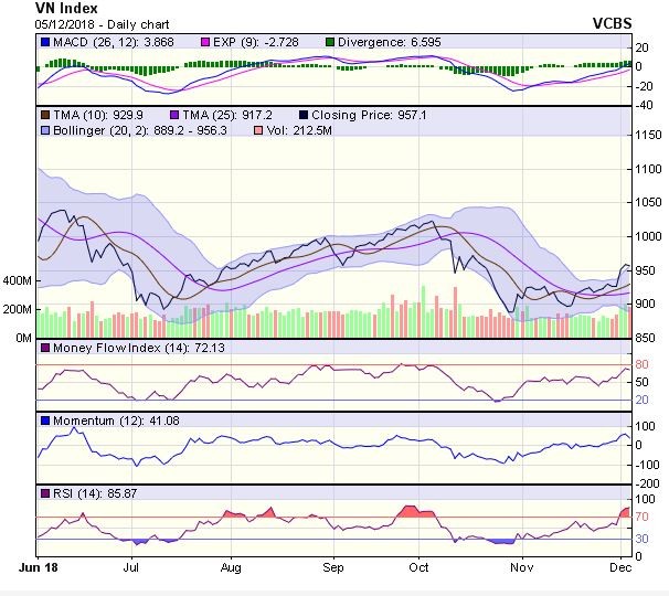 Dự báo, trong phiên giao dịch 6/12, VN-Index có thể sẽ tiếp tục giằng co và rung lắc mạnh trong khoảng giá 950-960 điểm