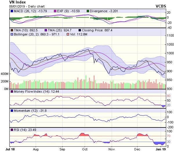 Tuy nhiên, chỉ số có phiên phục hồi tích cực vào phiên 4/1/2019 và chỉ số đang duy trì trên MA5, cho thấy cơ hội đảo chiều xu hướng chính là vẫn còn.