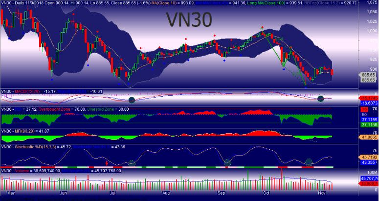 Lực cầu thiếu vắng khiến chỉ số liên tục giảm trong phiên tạo ra một nến LongBlackCandle xuyên phá đường trung bình động 10 ngày của đợt tăng giá vừa qua. Như vậy, nếu chỉ số VN30 không vượt trở lại được lên trên đường trung bình động 10 ngày ở quanh mốc 893 điểm trong những phiên giao dịch đầu tuần tới, đợt hồi phục khả năng sẽ thất bại. SSI hạ mức mức đảo chiều phiên về 879 điểm cho phiên giao dịch đầu tuần.