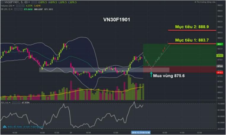 HĐ VN30F1901 cũng hòa nhịp theo xu hướng suy giảm của chỉ số cơ sở nhưng do chỉ số cơ sở đã tiến vào vùng hỗ trợ mạnh nên mức độ suy giảm của HĐ thấp hơn chỉ số cơ sở, chỉ dừng trước mức hỗ trợ 870 điểm, thể hiện tâm lý kỳ vọng hồi phục của nhà đầu tư.