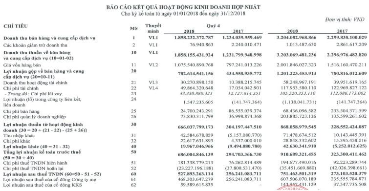 Kết thúc quý IV, Hà Đô lãi trước thuế 686 tỷ đồng, cao hơn 133% so với cùng kỳ 2017. Lãi ròng đạt 468,3 tỷ đồng, tăng 34%.
