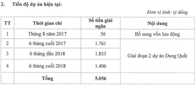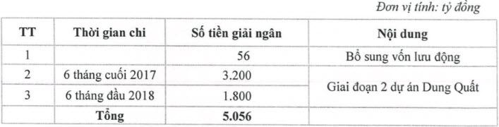 CTCP Tập đoàn Hòa Phát (HoSE: HPG) cho biết đã sử dụng 5.000 tỷ đồng để đầu tư cho giai đoạn 2 dự án Khu liên hợp Gang thép Hòa Phát Dung Quất và 56 tỷ đồng để bổ sung vốn lưu động.