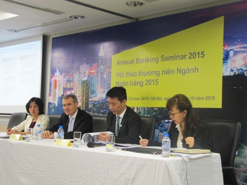 Ông Keith Pogson (thứ 2 từ trái sang) chia sẻ tại Hội thảo thường niên Ngân hàng 2015 |