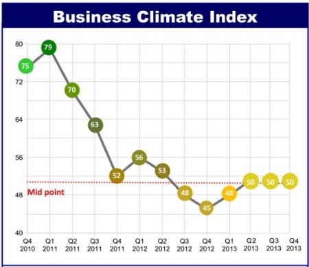 Dù Chỉ số BCI quý IV vẫn giữ ở mức 50 điểm nhưng khảo sát cho thấy niềm tin vào triển vọng kinh doanh của các DN đã giảm đi. Về tổng thể, 38% số DN được hỏi đánh giá tình hình hiện nay là tích cực (không thay đổi so với quý trước) và tốt hơn so với một năm trước đây. Số DN được hỏi có quan điểm tiêu cực về tình hình kinh doanh hiện tại (24%) đã giảm so với quý trước (28%).