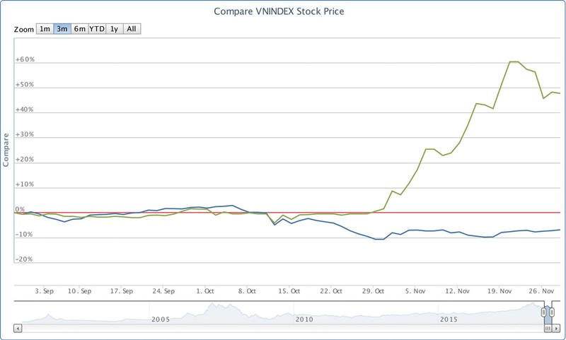 So sánh đà tăng của cố phiếu NTL với chỉ số Vn-Index