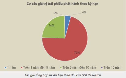 Trong 95 trái phiếu theo dõi, có tới 78 trái phiếu có kỳ hạn từ trên 1 năm đến 5 năm, giá trị phát hành là 51.085 tỉ đồng, chiếm 71,2% tổng giá trị trái phiếu phát hành. Kỳ hạn trung hạn thường được các doanh nghiệp cũng như các tổ chức tư vấn lựa chọn do có một số đặc điểm hội tụ như: