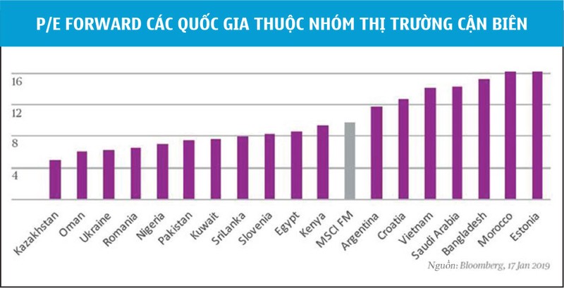 Với P/E forward ở mức 9,5 lần, giá trị trung bình của các thị trường cận biên đang ở gần với mức thấp nhất 7 năm qua. Đây là kết quả của các đợt điều chỉnh bất ngờ vào đầu năm 2016 và năm 2018. Nhờ vậy, các thị trường cận biên đang chứng tỏ sức hút nhờ giá trị ở mức hợp lý, với rất nhiều cơ hội tại các doanh nghiệp có quy mô lớn.