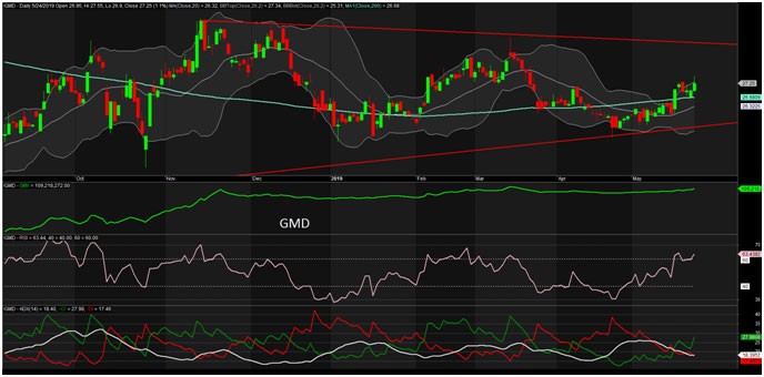 GMD khá mạnh trong bối cảnh phiên sụt giảm của chỉ số cuối tuần. GMD đã test thành công MA200 sau khi vượt qua phiên 17/5. Giá hiện tại đang có xu hướng bám giải BB top và các chỉ báo quan trọng khác đều ủng hộ mua. Cắt lỗ dưới 26,5.