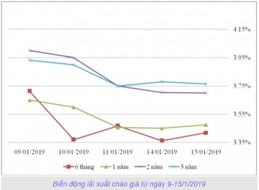 Trong phiên giao dịch trái phiếu Chính phủ (TPCP) ngày 15/1/2019, thị trường có xu hướng chào bán ròng, trong đó kỳ hạn 1 năm, 3 năm và 5 năm có khối lượng chào mua và chào bán cao nhất, đạt 4,3 triệu trái phiếu trên mỗi kỳ hạn.