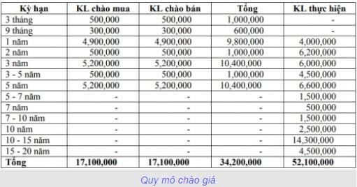 Giao dịch trong ngày được thực hiện tại các kỳ hạn 1 năm, 2 năm, 3 năm, 3-5 năm, 5 năm, 5-7 năm, 7 năm, 7-10 năm, 10 năm, 10-15 năm và 15-20 năm, với tổng khối lượng thực hiện đạt hơn 52,1 triệu trái phiếu.