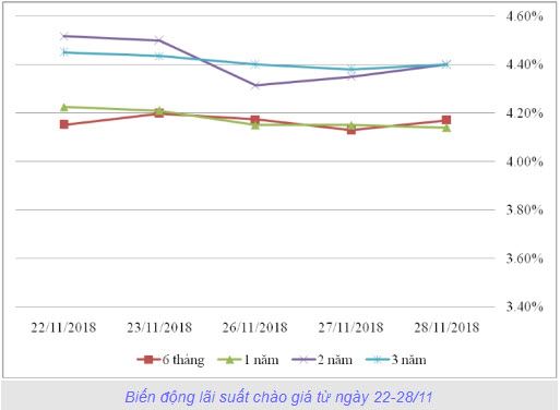 Trong phiên giao dịch trái phiếu Chính phủ (TPCP) ngày 28/11/2018, thị trường có xu hướng chào mua chào bán cân bằng, trong đó các kỳ hạn 3 năm và 5 năm có khối lượng chào mua lớn nhất, đạt 4,8 triệu trái phiếu trên mỗi kỳ hạn.