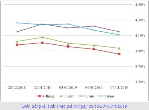 Trong phiên giao dịch trái phiếu Chính phủ (TPCP) ngày 7/1/2019, thị trường có xu hướng và chào bán thể hiện cân bằng, trong đó kỳ hạn 1 năm, 3 năm và 5 năm có khối lượng chào mua và chào bán cao nhất, đạt 4,8 triệu trái phiếu trên mỗi đơn vị kỳ hạn.