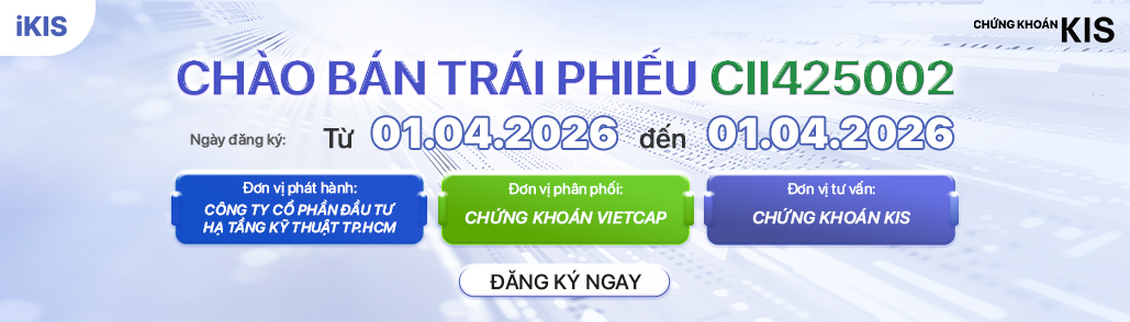 Công ty Cổ phần Chứng khoán KIS Việt Nam xin thông báo đến Quý Nhà đầu tư về đợt chào bán Trái phiếu chuyển đổi CII425002 của Công ty Cổ phần Đầu tư Hạ tầng Kỹ thuật TP.HCM (CII). Với vai trò là đơn vị tư vấn, KIS hân hạnh đồng hành cùng Quý khách trong việc tiếp cận giải pháp đầu tư an toàn, kết hợp tiềm năng tăng trưởng vượt trội từ các dự án hạ tầng trọng điểm.