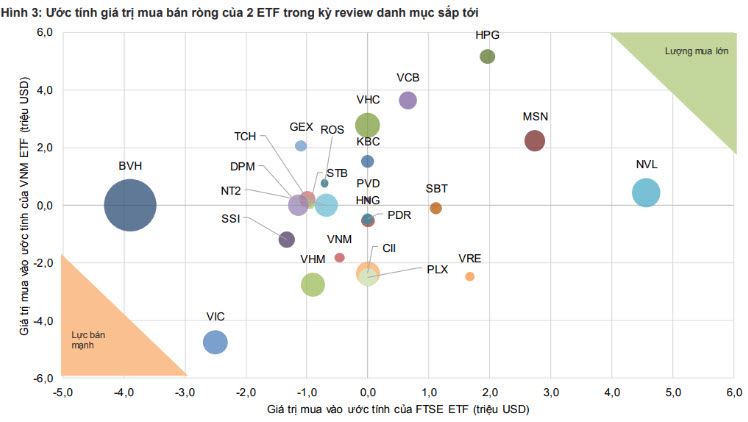 Quỹ FTSE Vietnam ETF (FTSE ETF) sẽ công bố kết quả review FTSE Vietnam Index vào ngày 1/3 và quỹ VanEck Vectors Vietnam ETF (V.N.M ETF) thông báo các thay đổi đối với MVIS Vietnam Index trong kỳ review lần này vào ngày 8/3. Các thay đổi này sẽ có hiệu lực kể từ ngày 15/3. Các quỹ ETF là FTSE ETF và V.N.M ETF theo dõi tương ứng các chỉ số FTSE Vietnam ETF và MVIS Vietnam Index sẽ cần thực hiện các giao dịch mua bán tiếp sau đó nhằm đưa tỷ trọng danh mục của quỹ về sát với tỷ trọng của các cổ phiếu trong chỉ số được theo dõi.